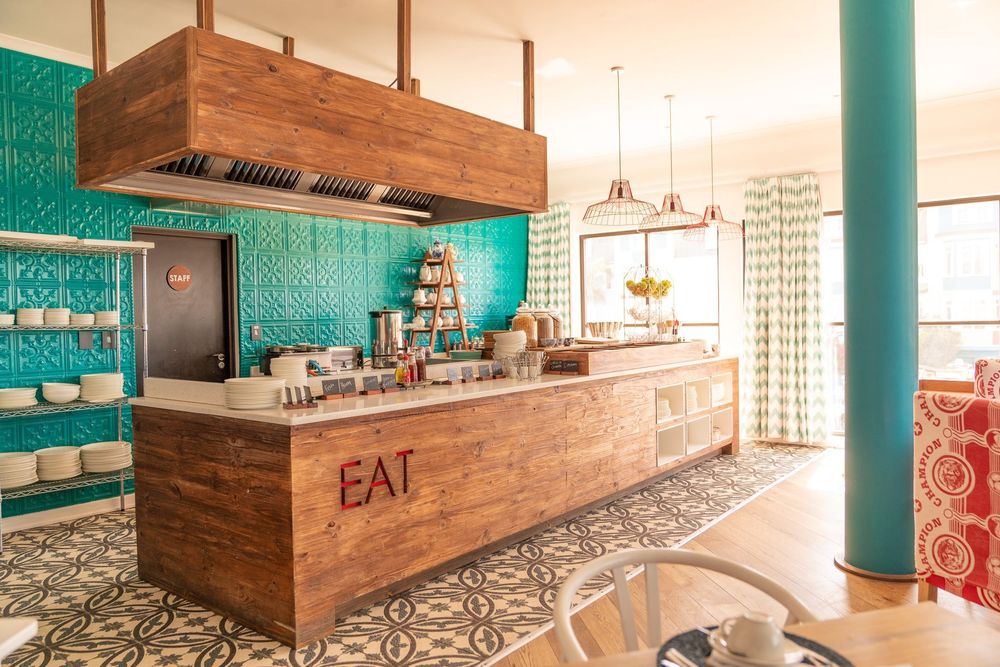 Hier gefällt uns ganz besonders der Look der Zimmer im Surfer und Ocean Style. Mitten in der Wüste verspürt man hier ein "Hang Loose" Gefühl
