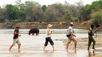 Um die Tageshitze zu vermeiden beginnen morgendliche Wanderungen sehr früh. Die Guides nehmen Rücksicht auf die Fähigkeiten der Gruppe, um den Komfort der Gäste jederzeit zu gewährleisten. Trinkwasser wird bereitgestellt und der begleitende Teeträger zaubert während einer Zwischenpause eine willkommene Tasse frischen Tee oder Kaffee mit einem leichten Snack. Am späten Vormittag kehren die Gäste ins Camp zurück und haben Zeit, sich zu entspannen und zu Mittag zu essen. Gegen 15:30 Uhr wird der High Tea serviert, man zu einer weiteren kürzeren Wanderung aufbricht. Die Rückkehr ins Camp ist vor Einbruch der Dunkelheit. Auf diesen Wanderungen sind Begegnungen mit Löwen, Elefanten, Hippos und Büffeln möglich. Die Wanderungen führen meist an einem Flussufer hinunter, dann durchwaten alle den Fluss und es geht auf der anderen Seite wieder zurück.