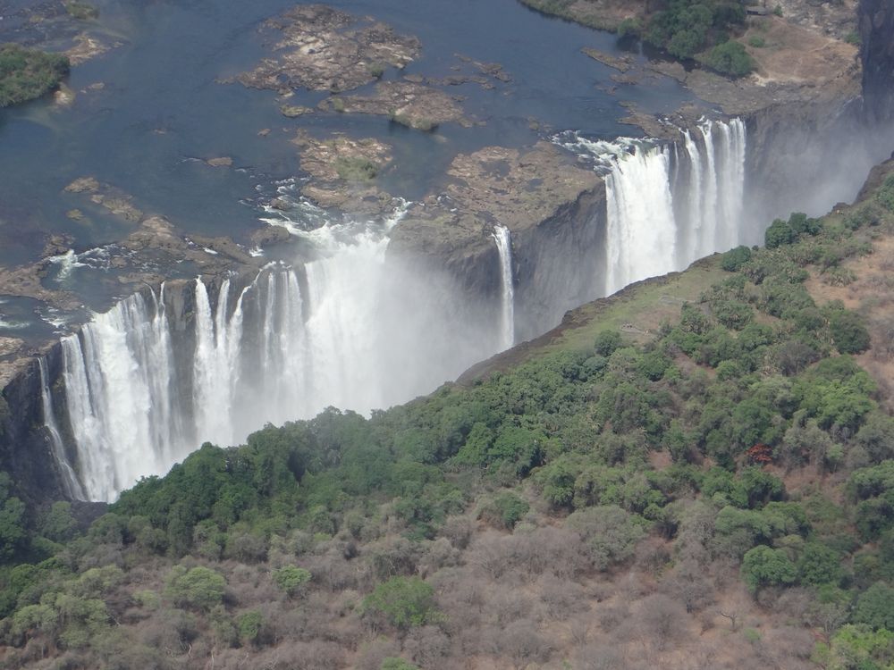 Wo die Grenze zwischen Sambia und Simbabwe verläuft, stürzt sich der wilde Sambesi Fluss über eine Breite von 1700 Metern mit gewaltigem Getöse in eine gigantische Schlucht. Willkommen an den größten Wasserfällen Afrikas, den breitesten der Erde. Die Victoriafälle sind - im wahrsten Sinne des Wortes - berauschend schön. Es ist ein spektakuläres Schauspiel, wenn sich das Sonnenlicht bricht und einen Regenbogen nach dem anderen hervorzaubert - in manchen Monaten sogar in der Nacht!
